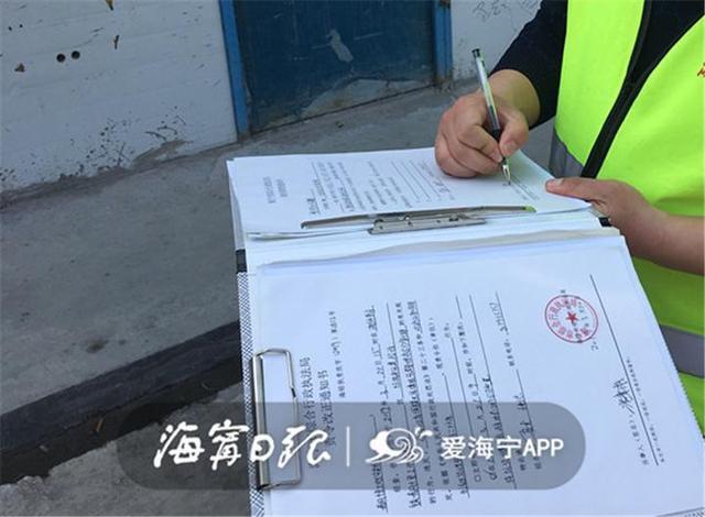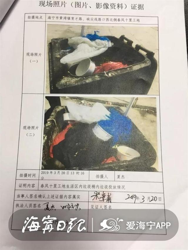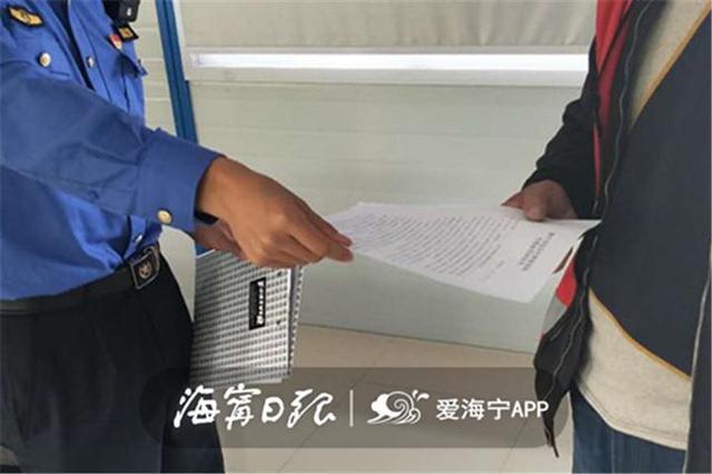 上午9点多,市综合行政执法局执法人员来到尖山新区(黄湾镇),向海宁鸿翔科大置业有限公司下达了《行政处罚决定书》,罚款1200元整。