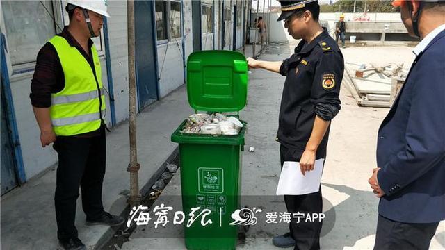 3月19日下午,市综合行政执法局执法人员在对尖山新区(黄湾镇)育才路、硖尖线路口西北侧“春风十里”建设项目工地进行现场检查的过程中,发现该工地生活区的生活垃圾未分类投放。